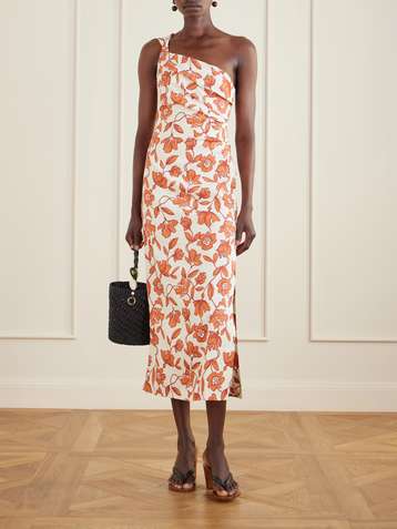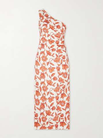 Chloe one-shoulder floral-print linen-blend midi dress