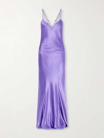 Crystal-embellished satin-crepe gown