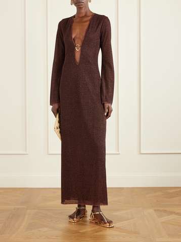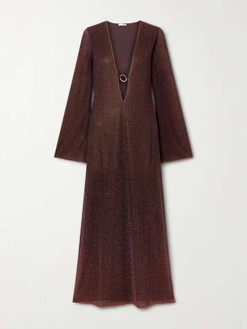 Embellished gathered textured Lyocell-blend halterneck maxi dress