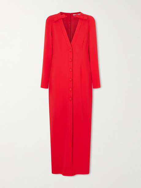 Alessandra Rich's midi dress is the ultimate way to power dress. It's made from cady with a deep plunging V-neckline and a column cut that's amplified by a front slit. Match your lipstick to the striking shade.