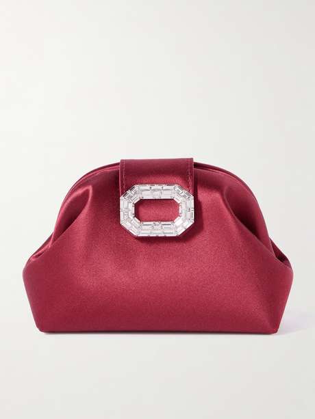 Amina Muaddi's 'Camelia' clutch is tipped with the same glamorous buckle as its namesake pumps. Timeless with a sense of occasion, it's made from lustrous satin and sized to hold a phone, lipstick and cards.