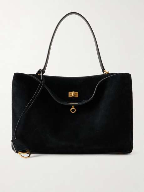 Balenciaga's 'Rodeo' bag is reminiscent of vintage briefcases. Made from supple suede, it has a slouchy shape and striking gold-tone hardware. There's plenty of space and compartments inside to neatly organize your essentials - think wallet, keys, makeup kit, water bottle and tablet. Attach the strap to go hands-free on long commutes.