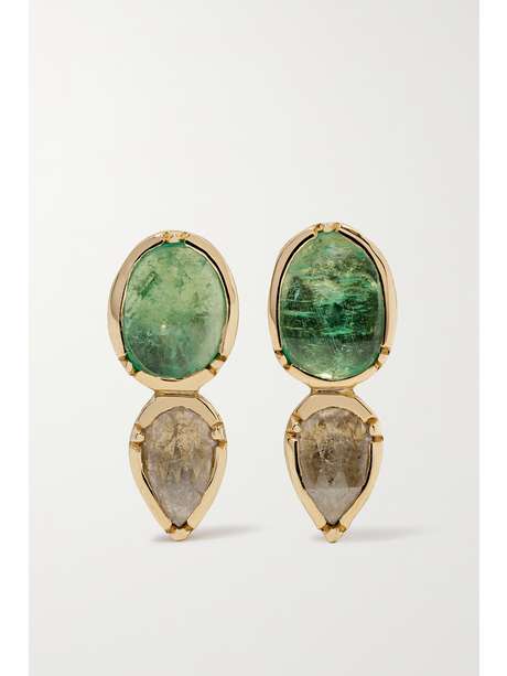 BROOKE GREGSON Double Orbit 18-karat gold, emerald and diamond earrings