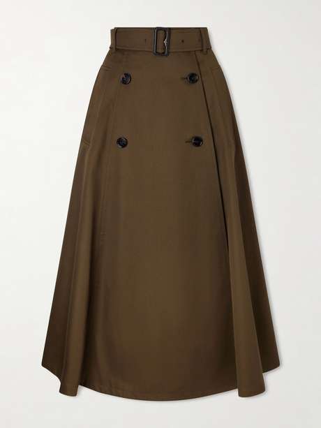 Burberry's skirt has the same utilitarian touches as the brand's trusted trench coats. Made from water-resistant cotton woven in its Yorkshire mill, this style has a buttoned front inspired by double-breasted designs. Sitting high on the waistline, it flares to an A-line hem and is accompanied by a detachable B buckle belt.