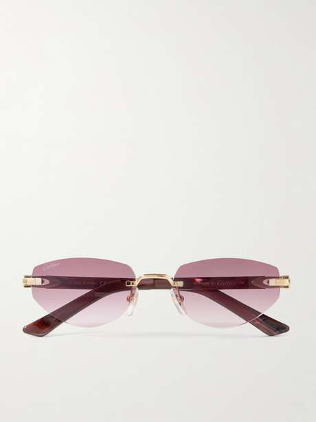 Cartier's experience in fine jewelry shows in its approach to eyewear. These 'Signature C Décor' sunglasses have rimless lenses with gold-tone metal hinges and marbled acetate arms. The softly angled frames will add a little sharpness to your look.