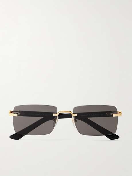 Cartier Eyewear's 'C Décor' sunglasses have rectangular frames that are super sleek and sophisticated. Characterized by a rimless profile, they're made from gold-tone metal with slim acetate arms.
