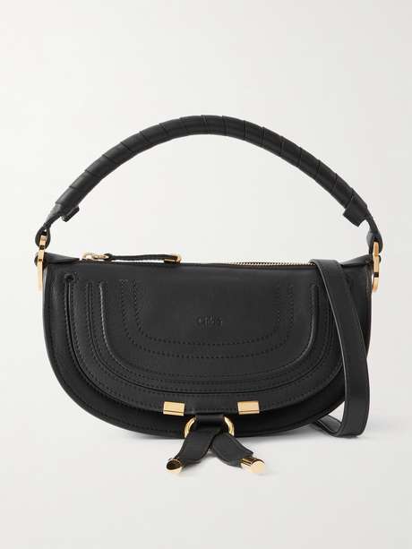 Constantly reinvented season after season, Chloé's 'Marcie' returns with a crescent slouchy shape. It has been crafted in Italy from supple leather, with signature saddle stitching and gold-tone hardware. Fasten the tassels to keep your belongings secure: think phone, cardholder and hand cream.