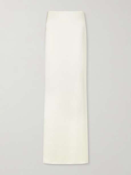 COLLEEN ALLEN Lace-trimmed silk-satin maxi skirt