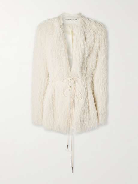 Dries Van Noten's Fall '25 collection celebrates "elegance from other eras in the key of today." Reminiscent of 1920s flapper style, this jacket has a wrap shape and is covered with frothy fringing . It was worn on the runway with the matching dress for a double dose of texture.