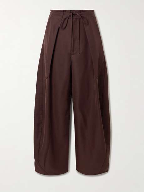 KALLMEYERs 'Clemence' pants are made from panels of wool-blend in a barrel-leg shape, which is so popular right now. They're topped with adjustable ties at the paper-bag waist and have sharp pleats that enhance the volume.