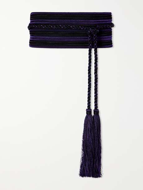 Le Sundial's 'Vesper' belt is woven from black and navy cord with braided tassels that move fluidly. Designed to wrap at the waist, it adds definition over a shirt or dress.