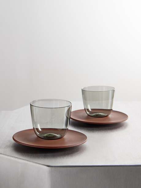 Lobmeyr's espresso set is designed in collaboration with porcelain manufacturer Meissen. It features crystal glass cups and Böttger stoneware saucers and has a clean, minimalist design. Use it to serve your favorite roast.