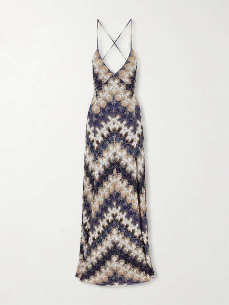 EXCLUSIVE AT NET-A-PORTER. Missoni's maxi dress is patterned with the brand’s signature zigzag motif in vibrant, multicolored hues. Designed with a V-neckline and slim straps, it falls to a fluid, floor-length silhouette.