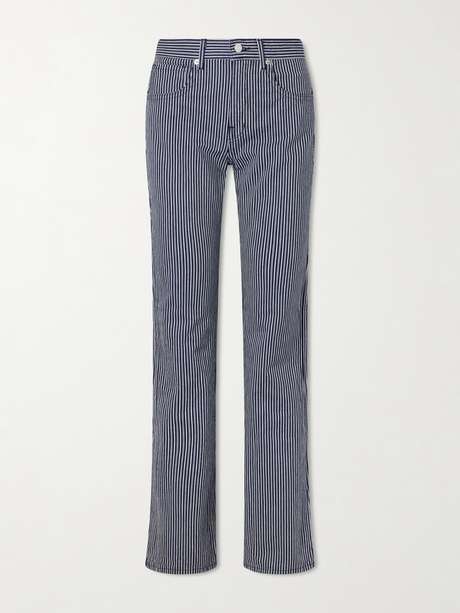 Nili Lotan’s' 'Celia' striped jeans are cut in a straight-leg silhouette with subtle vertical stripes that elongate the frame. Sitting high on the waist, these jeans fall straight through the leg for a relaxed yet polished feel. Style them with a tucked-in tee or crisp shirting.