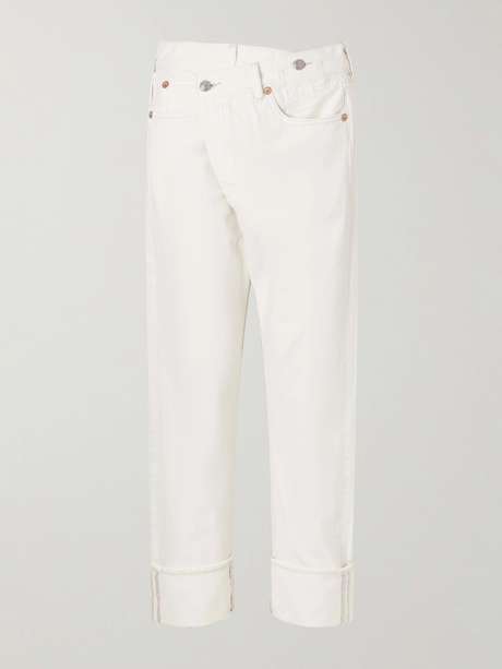 R13’s 'Cuffed Crossover' jeans embody the label’s signature punk-inspired aesthetic. Designed in a relaxed silhouette with cuffed hems, they balance deconstructed detailing with refined craftsmanship.