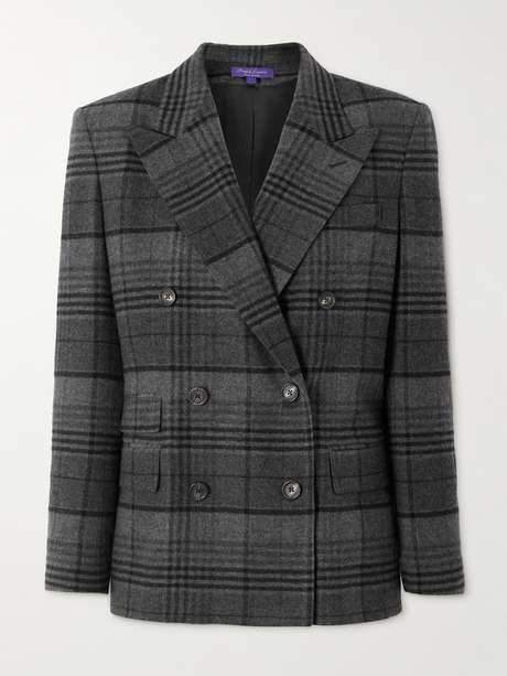 Ralph Lauren Collection's 'Kent' blazer was part of its Fall '25 runway show, which balanced masculine and feminine styles. Tailored in Italy from checked wool, it has a double-breasted front and wide peak lapels. Wear yours with the matching pants and classic loafers.