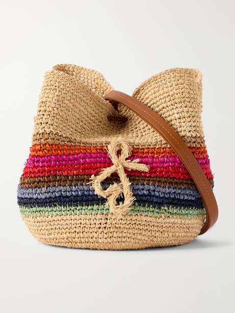 RUSLAN BAGINSKIY Leather-trimmed striped woven raffia pouch