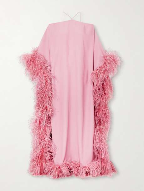 You're sure to make a dazzling impression when wearing Taller Marmo's glamorous 'Sza Sza Extravaganza' gown. It's made from cady with an adjustable halter neckline and has a relaxed, floor-pooling shape that's trimmed with swishy feathers. Wear yours with glittering earrings.