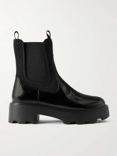 Tory Burch puts its stamp on the classic Chelsea style by adding its monogram to these boots. Made from shiny patent-leather, they're trimmed with debossed neoprene and rest on chunky lug soles.