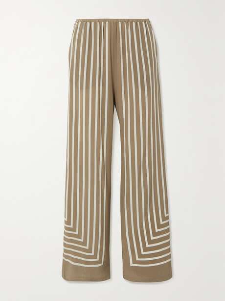 EXCLUSIVE AT NET-A-PORTER. TOTEME's pants are cut from fluid silk adorned with stripes inspired by the label's signature scarves. They're designed for a relaxed, wide-leg shape and topped with an elasticated waistband for comfort. Lift the floor-sweeping cuffs with heeled sandals.