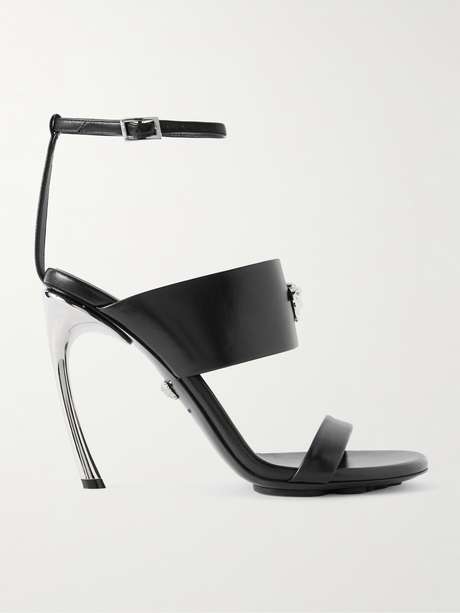 Versace's sandals were styled with several looks on the label's Fall '25 runway, proving just how versatile they are. They've been made in Italy from smooth leather and are embellished with the signature 'Medusa' hardware, which matches the sculptural silver-tone stiletto heels.