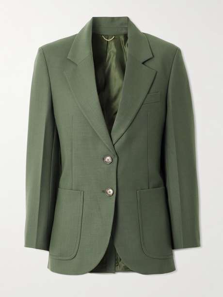 Victoria Beckham's blazer comes in a fresh 'Oregano' shade that'll go nicely with denim or tailoring. It's made from twill with a generous amount of wool and has a single-breasted shape with streamlining darting and patch pockets.