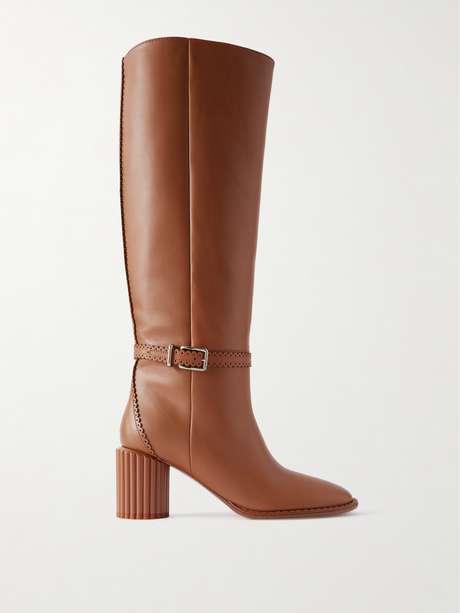 Zimmermann's boots are the latest addition to the label's bohemian 'Eddie' collection, defined by laser-cut scalloped details and column-inspired, ribbed block heels. They're made from smooth leather and have slim buckled straps framing the ankles.