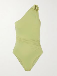 MAYGEL CORONELEcos one-shoulder appliquéd ruched swimsuit