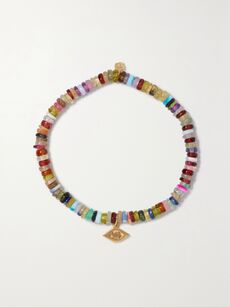 DIANE KORDASEvil Eye 14-karat gold and cord multi-stone bracelet