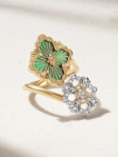 BUCCELLATIOpera Tulle 18-karat yellow and white gold, diamond and enamel ring