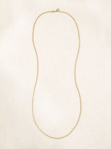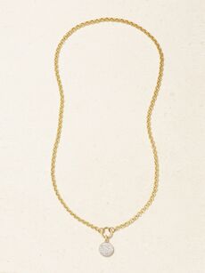 Nikos Koulis, meanwhile, offers a design that marries the minimalist with the maximalist, with an elegant slim chain cast from 18-karat yellow and white gold, and two eye-catching long links set with glistening pavé diamonds. When investing in a hero piece like this, the devil is in the detail – even its clasp showcases the Greek designer’s signature flair, with the brand emblem set upon black enamel. Don’t miss the opportunity to personalize a long chain, either. Lucy Delius’s long belcher chain features a pocket-watch pendant dusted in seamlessly set pavé diamonds, and its prominent sailor lock offers the opportunity to add further pendants and charms of your choosing. Another knockout piece is her crescent-moon-motif necklace, which features the British brand’s ‘Diamond Muff’ chain, where slim bars are embellished with twinkling diamonds.