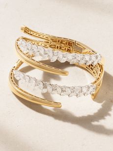 A capsule collection is best built with a concise edit of standalone jewels that don’t need to be layered and stacked in abundance – anyone who has fiddled with multiple clasps on an elaborate wrist stack in 40-degree heat will understand the need for a no-muss, no-fuss approach. A statement cuff is a save-all, such as Carolina Bucci’s contemporary silver design, which is expertly etched to achieve her signature ‘Florentine’ finish that never fails to sparkle in the sunshine and is casual enough to be worn with a bikini, shorts and a simple tank top, but will look dressier after dark. Yeprem’s 18-karat gold and diamond cuff and Marina B’s 18-karat gold cuffs are investment pieces that won’t fail to command attention – these are one-and-done wonders that should be reserved for ultra-special moments under the stars.