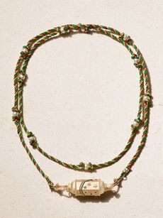 MARIE LICHTENBERGRainbow Star Locket 18-karat gold, pearl, enamel and multi-stone cord necklace