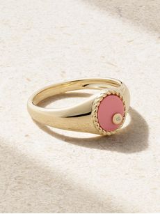 YVONNE LÉONBaby Chevalière 9-karat gold, coral and diamond signet ring