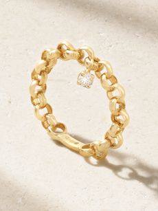 Gemella’s ‘Intertwin’ ring is the perfect piece to inject some color into your ring collection – its bold green tsavorites are set upon a sinuous interlocking rope design. Rope-inspired jewels have long been associated with strength, unity and connection, and they are an understated way of acknowledging an important person, moment, or union. While this isn’t a style that can be stacked, consider mirroring its lithe tacticity on the opposite hand, perhaps with a ready-made ring stack by Spinelli Kilcollin.