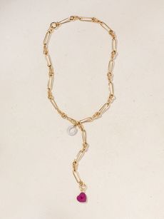 LUCY DELIUSTwisted Chain, Horseshoe and Heart convertible 14-karat gold, rhodium-plated, ruby and diamond necklace