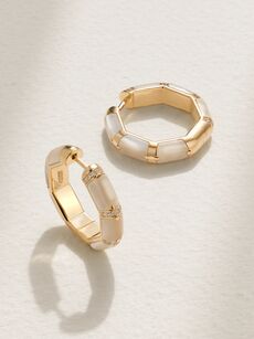 L'ATELIER NAWBARBamboo 18-karat gold, mother-of-pearl and diamond hoop earrings