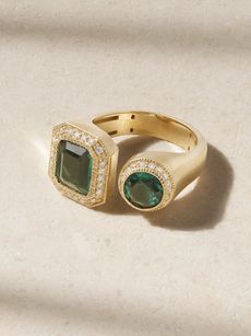 JACQUIE AICHE14-karat gold, diamond and emerald ring