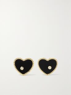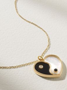 Fine jewelers are also exploring raven-hued jewels, offering petite yet precious pieces that liven up plain stacks of gold. There are the enamel maestros – Repossi, Marlo Laz and Yvonne Léon offer striking combinations of jet-black enamel paired with rose or yellow gold, while others explore the fathomless darkness of natural onyx. A decorative carving material, onyx can be traced back to Ancient Egyptian, Greek and Roman civilizations, when it was often employed for its purported talismanic properties. Retrouvaí’s ‘Puzzle’ pendant is a perfect example of onyx’s glossy allure, while Jennifer Meyer’s petite ‘Mini Heart’ necklace, Viltier’s ‘Magnetic’ motif, and Andrea Fohrman’s ‘Mini Cosmo’ earrings offer tiny pops of bold black. L’Atelier Nawbar employs onyx to provide an elegant contrast with white mother of pearl, while David Yurman’s convertible ‘Elements’ earrings bear high-shine black discs that can be added or removed according to your dress code.