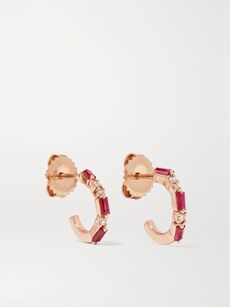 SUZANNE KALAN18-karat rose gold, ruby and diamond hoop earrings