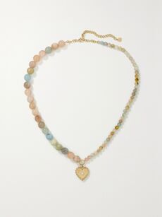 SYDNEY EVANLarge Scallop Heart 14-karat gold, morganite and diamond necklace