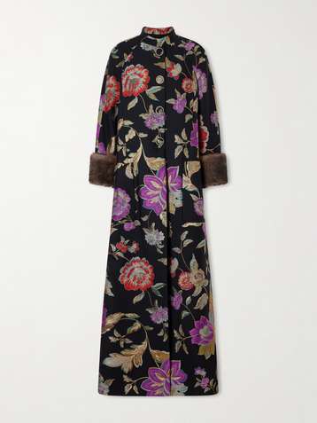 Bow-embellished shearling-trimmed leopard-print wool coat