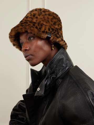 + Paula's Ibiza leather-trimmed crocheted cotton bucket hat