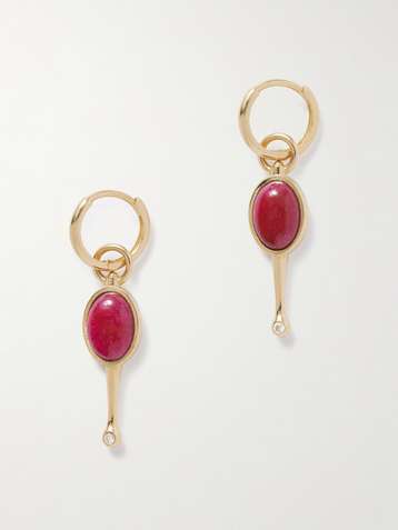 Stellar Key 14-karat gold, ruby and diamond hoop earrings
