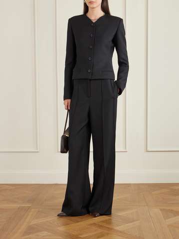 Embroidered French cotton-blend terry wide-leg sweatpants