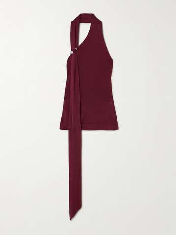 Pierced embellished asymmetric knitted top
