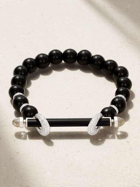 ANANYA Chakra 18-karat white gold, onyx and diamond bracelet