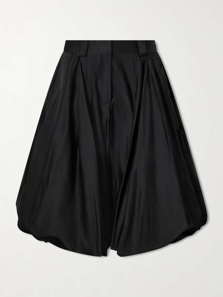 Seen on the runway, these balloon pants by Balenciaga play with volume and proportion. Cut with an exaggerated rounded shape, they fall from the waist into a sculptural silhouette that gathers at the hem. The minimalist design keeps the focus on the dramatic structure.