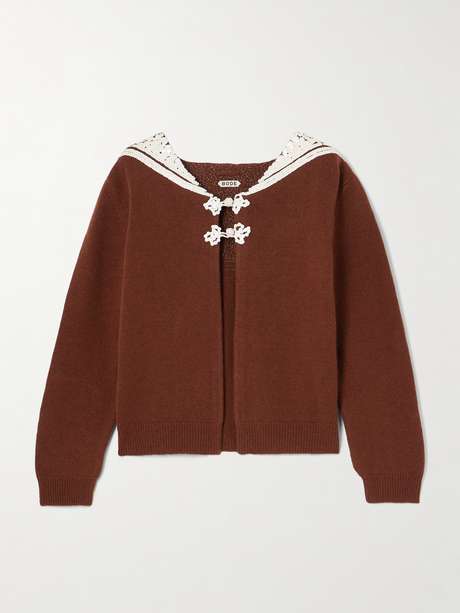 BODE's 'Astoria' cardigan is decorated with sequins that have been carefully hand-arranged to emulate the look of traditional sailor uniforms. It's knitted from a soft, lightweight wool and cashmere-blend and fastens with two knotted buttons.