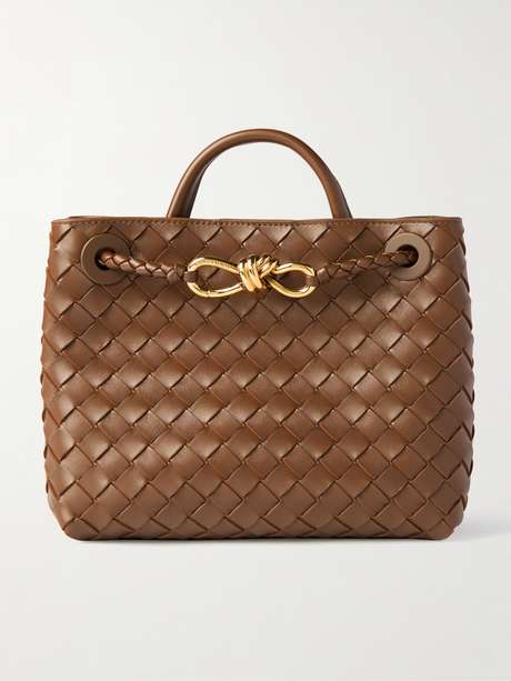 Bottega Veneta's 'Andiamo' tote comes in various sizes and colors, meaning there's a style for everyone. This small leather version features a long braided shoulder strap and perfectly fits your wallet and sunglasses case, as well as a makeup pouch. The gold-tone knot is a new signature and marker of the house's craftsmanship.